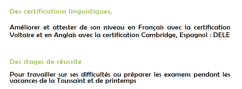 Les classes de première et de terminale générales Les cours en première et terminal Les options La préparation du baccalauréat 'Made in StLouis' Un pied dans le supérieur